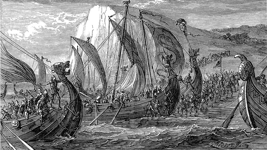 Skaldic verse was composed to celebrate Viking rulers over one thousand years ago. During King Cnut’s reign of England (1016-1035), the verses often took on new influences from Christianity. Eleanor Parker, lecturer in Medieval English Literature at Brasenose College, Oxford University, UK, reads from the Knútsdrápur. Image: Vintage engraving showing Danish Vikings invading Britain (duncan1890/Getty Images)