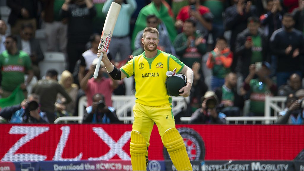 Australia's David Warner has now scored two centuries in eight days - a fine return after serving a year-long ban for ball tampering. He also becomes the first player in World Cup history to pass 150 twice. Photo: David Warner acknowledges the crowd after being dismissed for 166 (Getty Images)