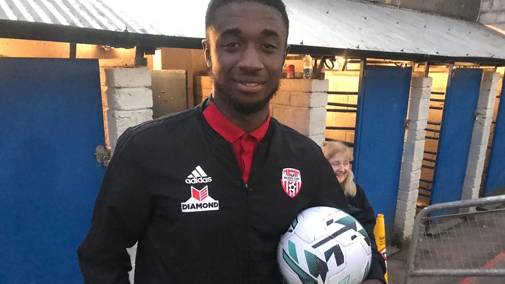 Eric White talks with Junior Ogedi-Uzokwe after his hat-trick against Cork in Derry's 4-1 victory at Turners Cross