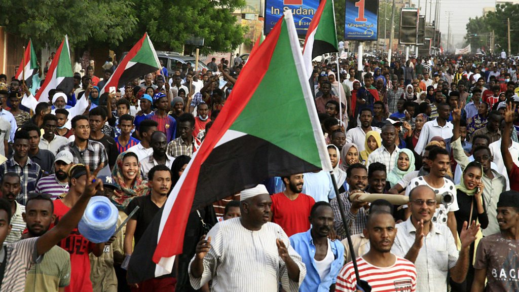 The authorities in Sudan say seven people have been killed and nearly two hundred injured during renewed protests in several cities. Tens of thousands of people took to the streets to keep up the pressure on the interim military rulers to hand power to a civilian administration. Sunday's protest was the biggest since dozens of people were killed in a crackdown on pro-democracy activists at the beginning of June. Newsday spoke to one of the protesters and agreed not to use his name or image. (Photo: Protesters on the streets of Khartoum. Credit: AFP)