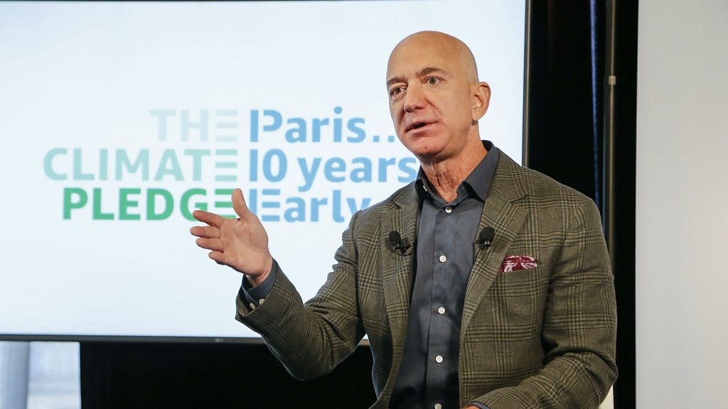 Employees at Amazon headquarters in Seattle are preparing to join the climate strike on Friday. Ahead of the global protests, the company’s CEO – Jeff Bezos – outlined a climate pledge that would see Amazon become carbon neutral by 2040. Rebecca Sheppard is a Senior Product Manager at Amazon and a member of Amazon Employees for Climate Justice. She told Newsday: “It’s absolutely a victory, but it’s not everything that we asked for. We actually don’t want to be carbon neutral, we want to be zero emissions. We don’t want to rely on carbon offsets.” (Photo: Jeff Bezos makes a climate pledge. Credit: Getty Images)