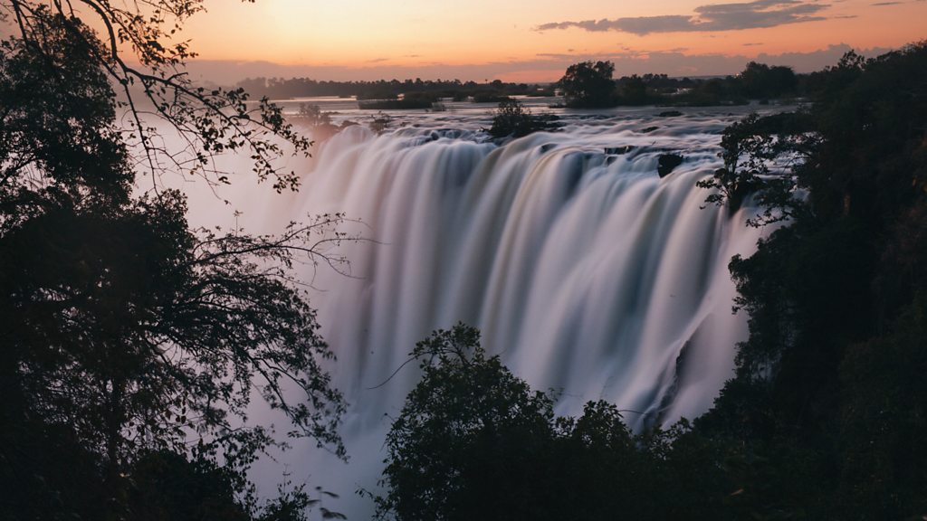 The quantity of water going over Victoria Falls is at one-sixtieth of its previous rate. Environment correspondent Matt McGrath on how climate change affects weather - and us. (Picture: Water cascading over Victoria Falls - in happier times. Credit: BBC)