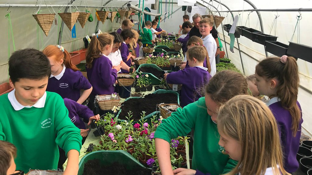 David Maxwell meets former teacher Graeme Stevenson and pupils at Loughview Integrated PS