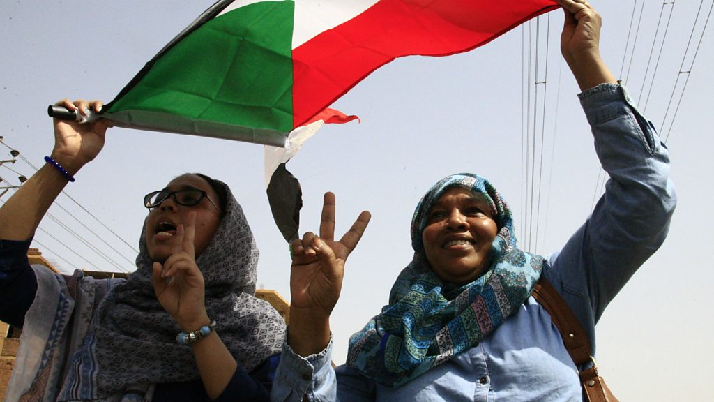 Transitional authorities in Sudan have approved a law to dissolve Omar al Bashir's party, the NCP and repealed a public order act which was often used to oppress the Sudanese people. Residents in the capital Khartoum have been celebrating on the streets. Among them was Samahir Mubarak, the spokeswoman for the Sudanese Professionals Association which spearheaded the protests against the former President. She spoke to BBC Newsday. (Picture: Female Sudanese protesters wave their national flag in Khartoum Credit: Ebrahim Hamid/AFP via Getty Images)