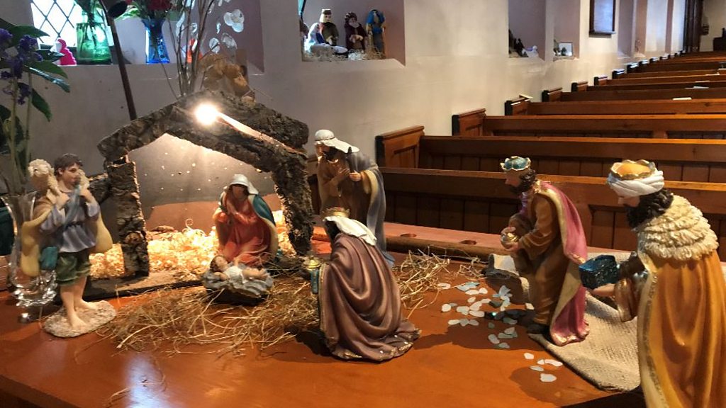 Linda Currin from St. Pauls, Scotforth guides us around their fifty nativity scenes.