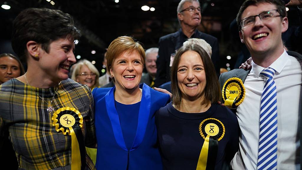 Garry Owen sydd yn Glasgow ar ran post Cyntaf wrth i'r SNP cipio seddi.