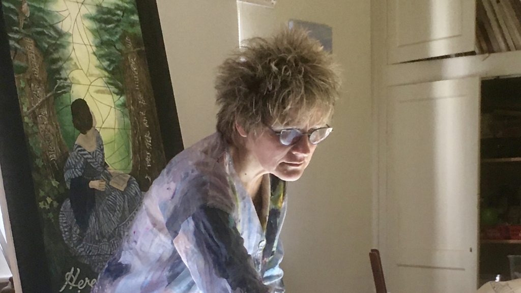 Artist Sophie Hacker working on a new window for Romsey Abbey