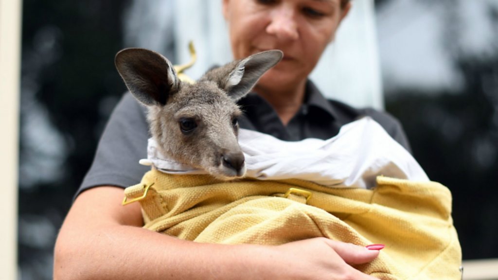 People from around the world are knitting blankets and clothes to help the animals hurt by Australia's bushfires. People are making pouches for orphaned kangaroos, mittens for burnt koalas, and blankets for bats which have lost their homes. Mariana Heggholmen lives in Norway and told BBC OS why she's been knitting for the animals. (Credit: A volunteer taking care of a rescued kangaroo at her house on the outskirts of Sydney. Credit: Saeed Khan/ AFP / Getty Images)