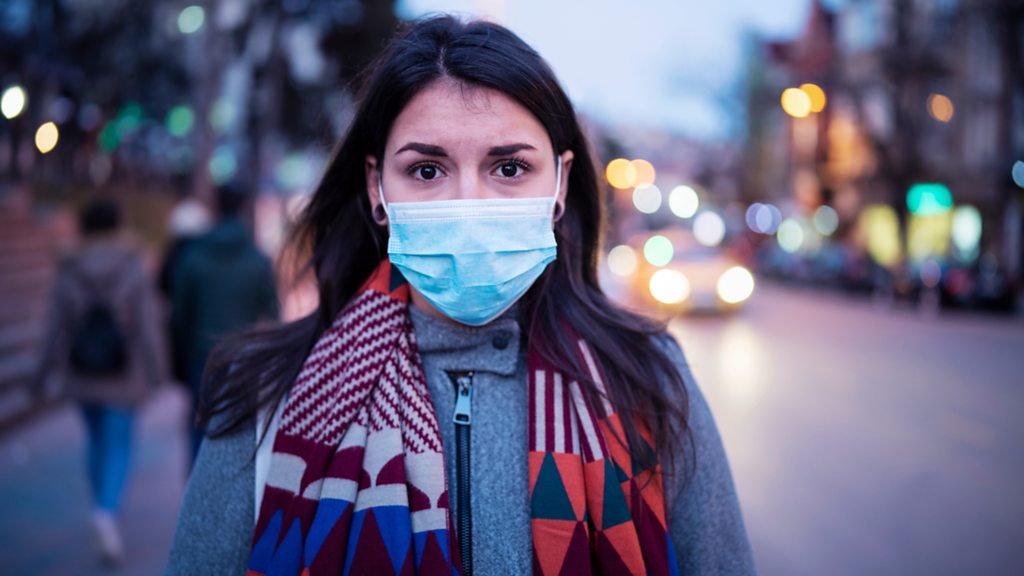 Claudia Hammond asks Prof Jonathan Ball from the University of Nottingham the questions which listeners have tweeted, including whether face masks and hand gels really can protect people from the coronavirus. (Image: A young Latino woman wearing a face mask. Credit: Getty Images.)
