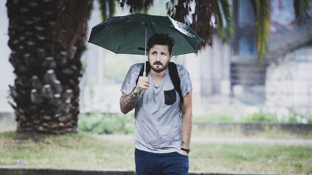 ProfLiz Bentley, chief executive at the Royal Meteorological Society, discusses with Anand Jagatia whether weekend weather is worse. (Image: A sad man with an umbrella in the rain Credit: Getty Images)