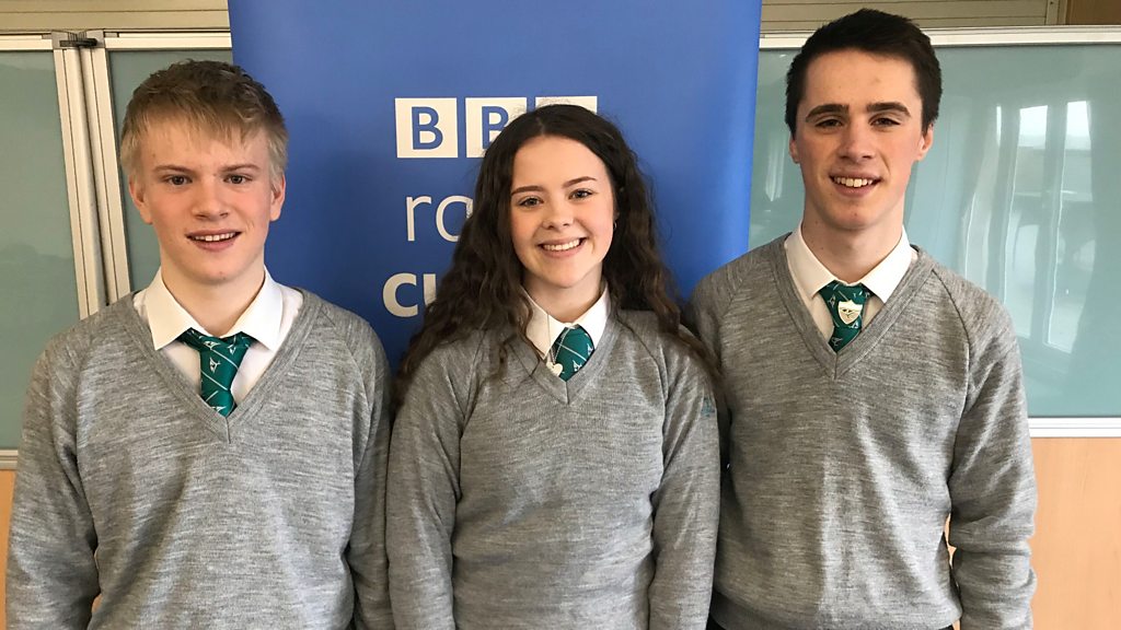 Osian, Rhiannon a Sion sy'n trafod effaith gwefannau cymdeithasol ar bobl ifanc.