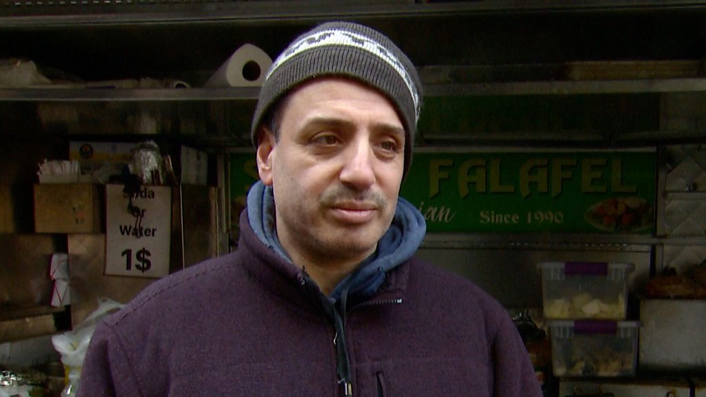 Yasser calls himself ‘the falafel guy'. He has been a street-food vendor in downtown New York for more than 17 years, but thanks to the coronavirus he has zero business and can’t imagine what the future holds. Photo: Yasser, the 'falafel guy' Credit: BBC