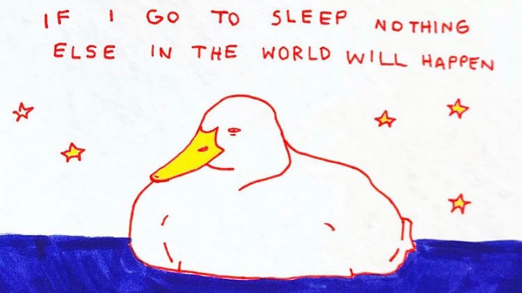 The illustrator, also known as Filtyratbag, explains how her art helps with her anxieties. Photo: Drawing with text If I Go To Sleep Nothing Else Will Happen Credit: Celeste Mountjoy