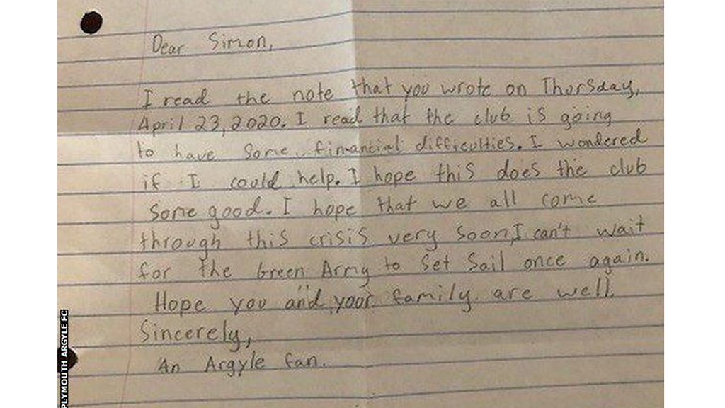 A young American Plymouth Argyle fan has posted his pocket money to them.