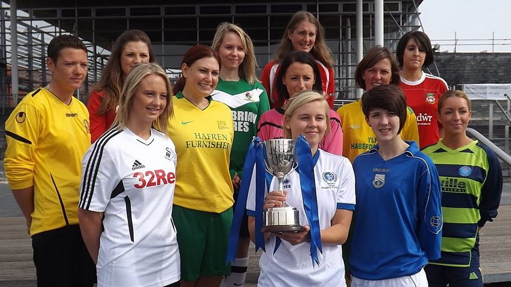 Lowri Roberts, Pennaeth Pêl-droed Merched FA Cymru, a Mari Edwards, hyfforddwr tim peldroed Airbus yn trafod yr ailstrwythuro.
