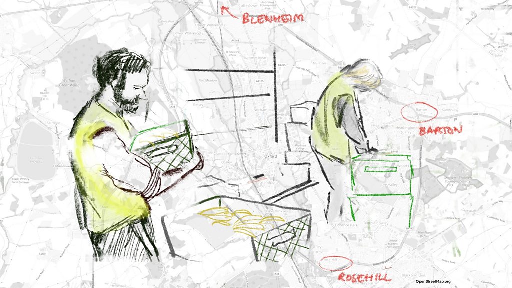 The pandemic has transformed the need for free or subsidised food. Across the UK people have lost work, been furloughed or had to isolate. The government says it has ploughed millions into front line charities, billions more has been spent in extra welfare support, but the Food Standards Agency estimates that around 7 million adults may have cut portions or skipped meals in May. At the start of this year, PM's reporter Chris Vallance spent time gathering the stories of those who used food banks in the city of Oxford. As food networks in the city warn demand has trebled since the pandemic began, Chris returned to the to see how local groups were coping. (Photo: Sketch of people in an Oxford food bank Credit: Chris Vallance)