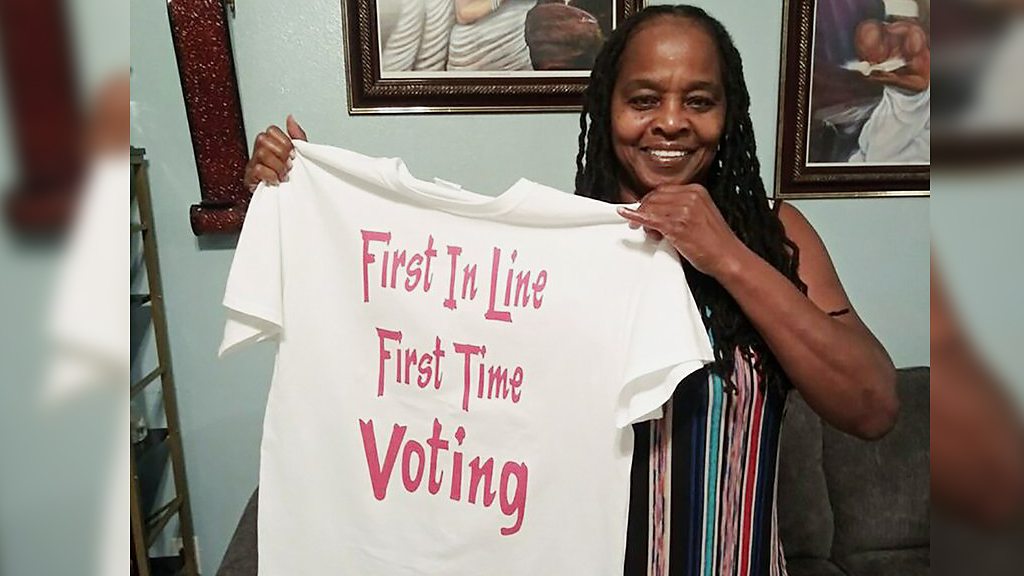 Amendment 4,passed in November 2018 in Florida, restored the voting rights of Floridians convicted on a felony charge. But then in 2019, the Republican Governor of Florida, Ron DeSantis, instituted a law that requires that people with felony records to pay all fines and fees associated with their sentence prior to the restoration of their voting rights. Mr DeSantis' critics claim this was a deliberate attempt to sabotage Amendment 4 - perhaps as a way of keeping a large number of black citizens off the voters' roll for good. Betty Riddle was convicted of a felony back in the Seventies when she was just 17 years old. After Amendment 4 was passed she managed one vote, in the presidential primaries, before the costs-and-fines ruling came down.