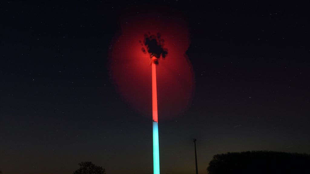 Remembrance events over the next week may be slightly different this year but it’s still important to stop and mark those moments in any way we can. At Swinford Wind Farm near Lutterworth they have done something very special by transforming one of their 125 metre high turbines into a giant poppy, with a cascade of smaller poppies falling down the tower. Dujon Goncalves-Collins from Vattenfall, who manage the site, and Mark Smith from the Royal British Legion spoke to BBC Radio Leicester's Jack Rafferty.