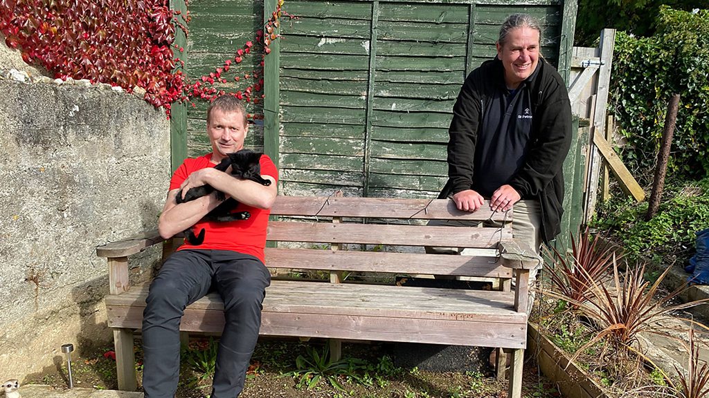 Austin, once homeless, and Dave from St Petrocs charity, on the volunteering work Austin now does with homeless people.