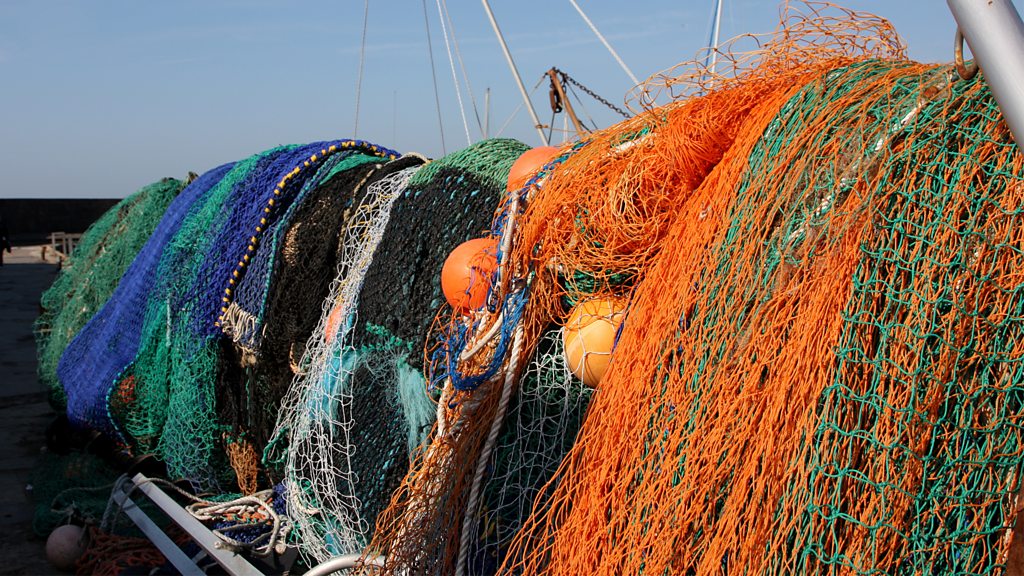 Discarded fishing nets pose a major environmental issue as they are largely made out of nylon – a type of plastic. Marine conservationist Prof Heather Koldewey collaborated with a carpet company to create Net-Works – a business that turns old fishing nets from the Philippines and Cameroon into high-end carpet tiles. So far, they have collected and recycled more than 200 tonnes of discarded nets. (Image: Fishing nets, Credit: BBC)