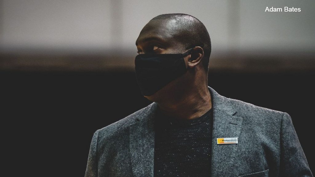 Sheffield Sharks head coach Atiba Lyons speaking to Peter Spencer, after 92-84 defeat to Newcastle Eagles.