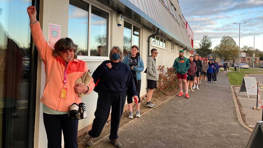 Leisure Centres across England have re-opened their doors, Helen McCarthy visited Enderby Leisure Centre to meet some of the people waiting to exercise this morning.