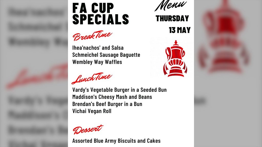What do you think of this for lunch? Ihea-NACHO'S, Wembley Way Waffles or a Brendon Beef or Vardy veggie burger. There's a bit of a theme there isn't there! Well they've been on the menu today for the staff and students at the City of Leicester College who it's safe to say are definitely getting into the spirit of the final. The menu was created by Keeley Boyd who is the catering manager.