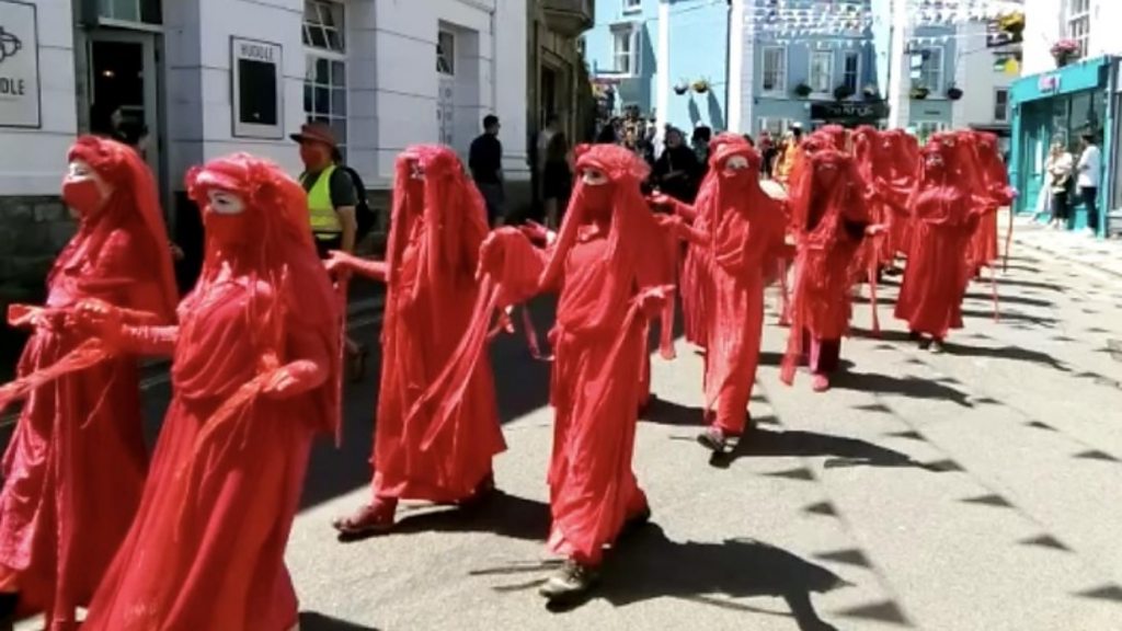 Campaign groups including Extinction Rebellion have filled Falmouth with sound and colour