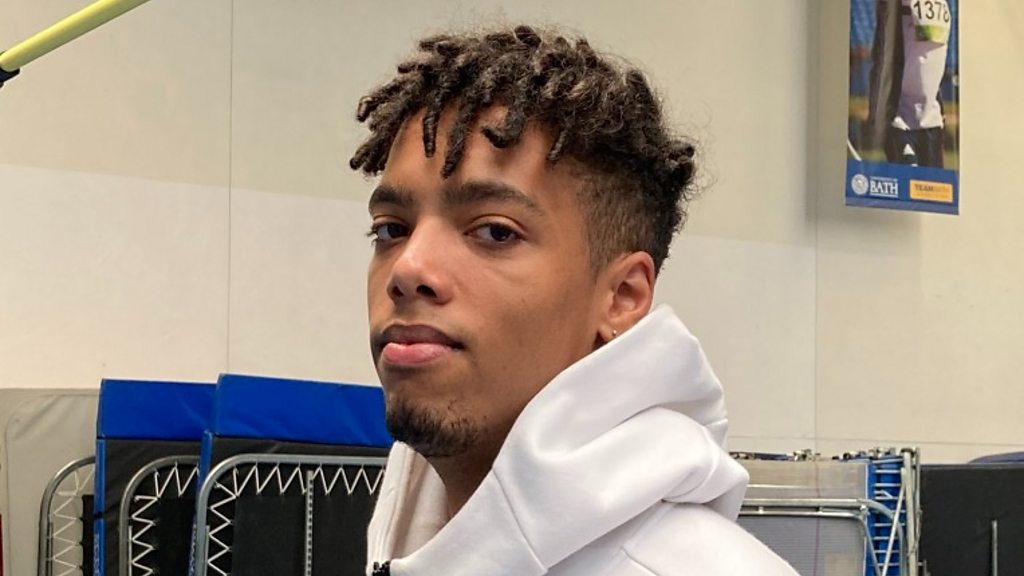 Marie Indge talks to Tom Gale after he wins at the British Championships.
