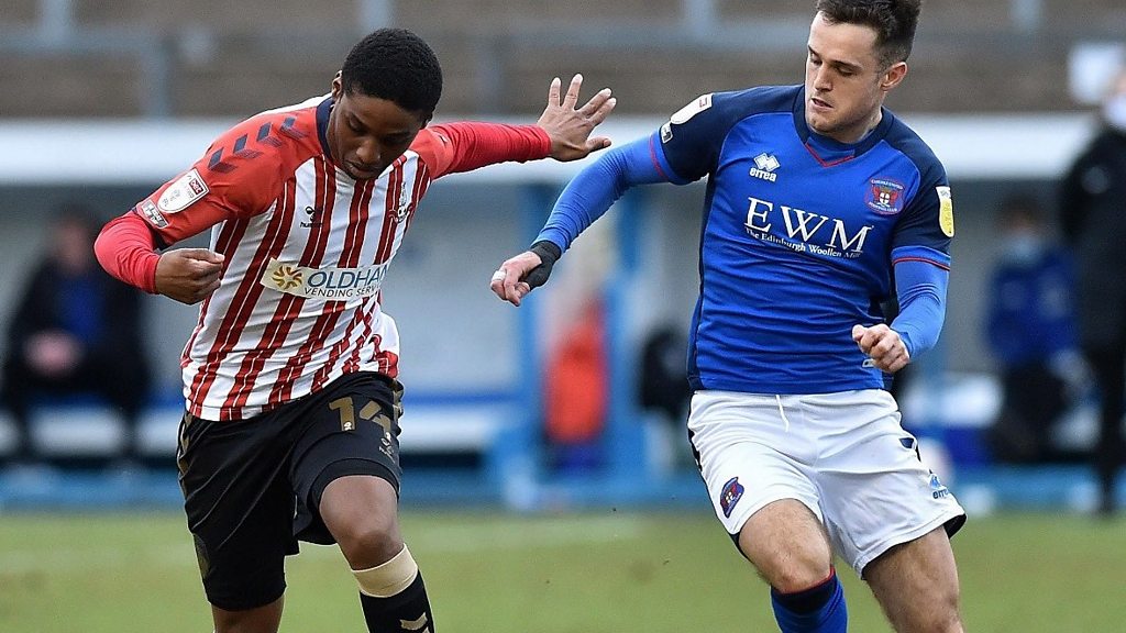 Carlisle United's Joe Riley on his 50th appearance for the Cumbrians.
