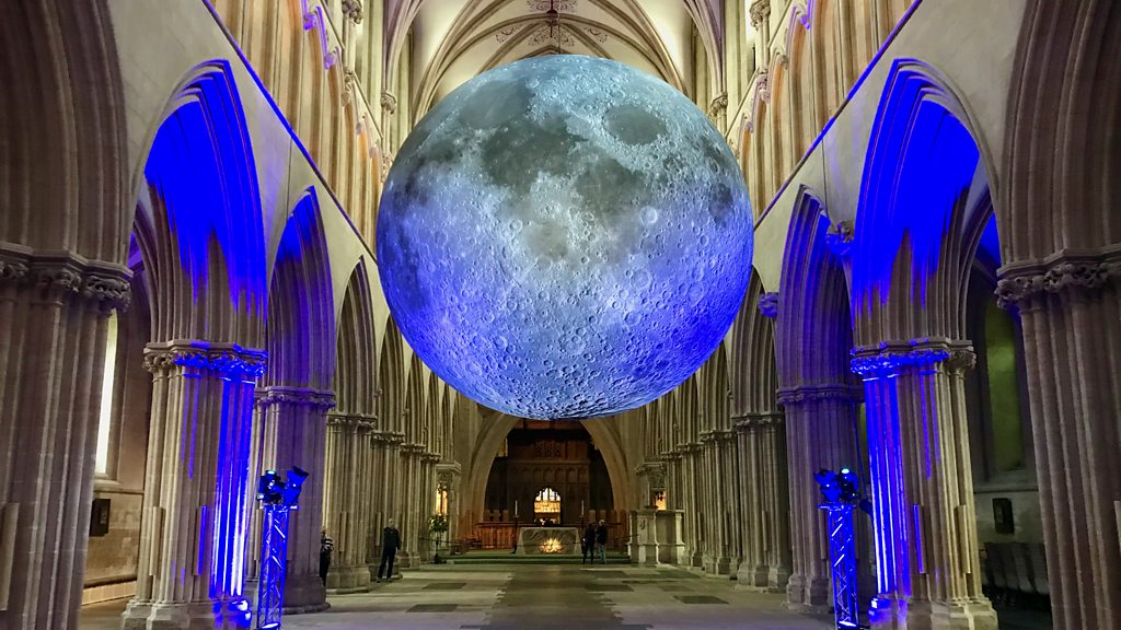 Luke Jerram's sculpture, which is seven metres in diameter, is hanging in the nave. The internally lit sphere features NASA imagery of the lunar surface. Claire Carter talks to the artist about his work and his moon's journey around the world to more than 30 countries.