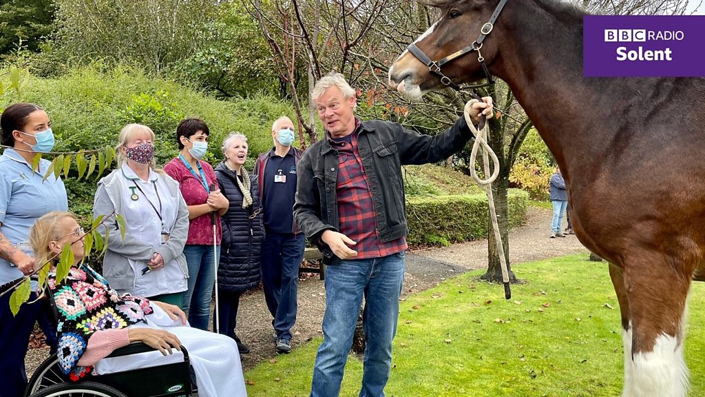 The actor and his Clydesdale met patients and staff at the charity's Dorchester hospice. And, as our reporter Charlotte Foot found out, Bruce seemed to take a shine to the hospice's lawn.