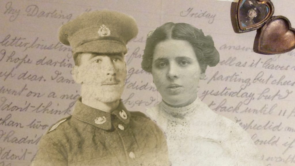 During the first world war, millions of letters were sent from soldiers in the battlefield to their loved ones back home. Will and Harry Saunders were twin brothers from Shipton Gorge near Bridport, Dorset. In May 1915 Will was killed by poisoned gas at Hill 60 near Ypres. Soon after, Will's brother Harry began exchanging letters with Florence. They later went on to marry. Their granddaughter, Barbara Montgomery, has been reading Harry's letters to BBC Radio Solent.