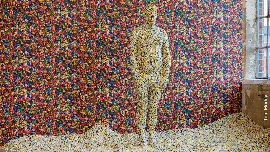 Plastic man made to represent annual plastic waste produced by each person in the UK
