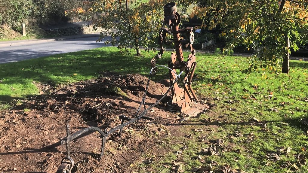 A new sculpture of a veteran serviceman returning from war and coming home to his farm.