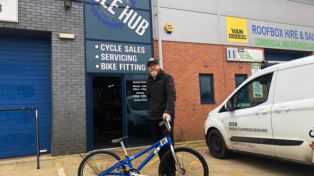 Paul Maidment from Peterborough Phantoms BMX club gives John Devine some riding tips.
