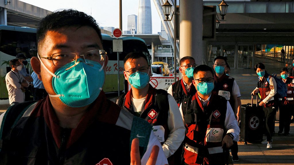 Coronavirus first emerged from the Chinese city of Wuhan in late 2019, but while many countries are learning to "live with Covid", infections in China have risen to the sort of levels not seen since the start of the pandemic. New lockdowns are being imposed on millions of people in Shenzhen and parts of Shanghai - and that seems to have spooked financial markets. The BBC's Asia Pacific editor Will Leonardo says there have been around 1,300 new symptomatic locally-transmitted cases on Sunday and 900 asymptomatic. Cities in the north eastern city of Jilin have also been shut down, various neighbourhoods have been sealed off in Shanghai, but the most consequential move is in Shenzhen, on the borders with Hong Kong. This been shut down for a week, with public transport suspended and the city's 17 million residents to be tested three times a week. This has seen the Hang Seng index to fall to its lowest level in six years as technology shares and stocks fall in value - Shenzhen is seen as China's Silicon Valley. Anxiety has also been fuelled also by Toyota factory suspensions in the north west of the country. This has spooked the authorities who are still aiming for a 'zero-Covid' transmission rate in China, and there have been announcements that new strategies to deal with outbreaks of infection may be introduced soon. Photo: Medical workers from China arrive at Shenzhen Bay Port, 14 March 2022 Credit: Reuters