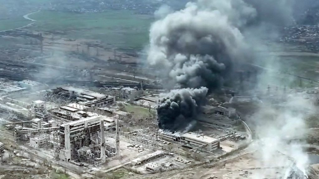 Ukraine's Azov Battalion is still holding out in Azovstal, a huge steelworks in Mariupol overlooking the Azov Sea, as Russian forces declare they control the rest of the city. The steelworks contains nuclear bunkers and tunnels, and is the last bastion of resistance. Sources estimate that a couple of thousand soldiers and civilians are holed up there. The commander has called it "hell on Earth". BBC correspondent Mark Lowen has been speaking to Olena, a relative of one of the fighters, who is desperate for news that they're still alive. She says the last message from her cousin Max was on 8th March. "I feel terrible, honestly. I cannot imagine what will happen to him. I would never have imagined my cousin to become a true hero of Ukraine but it's a bitter sense of pride." "Max, your family loves you a lot and we are waiting for you. You will be our hero." Photo: Smoke rises above Azovstal steelworks, in Mariupol, Ukraine - image from drone video footage Credit: Reuters, via Mariupol City Council