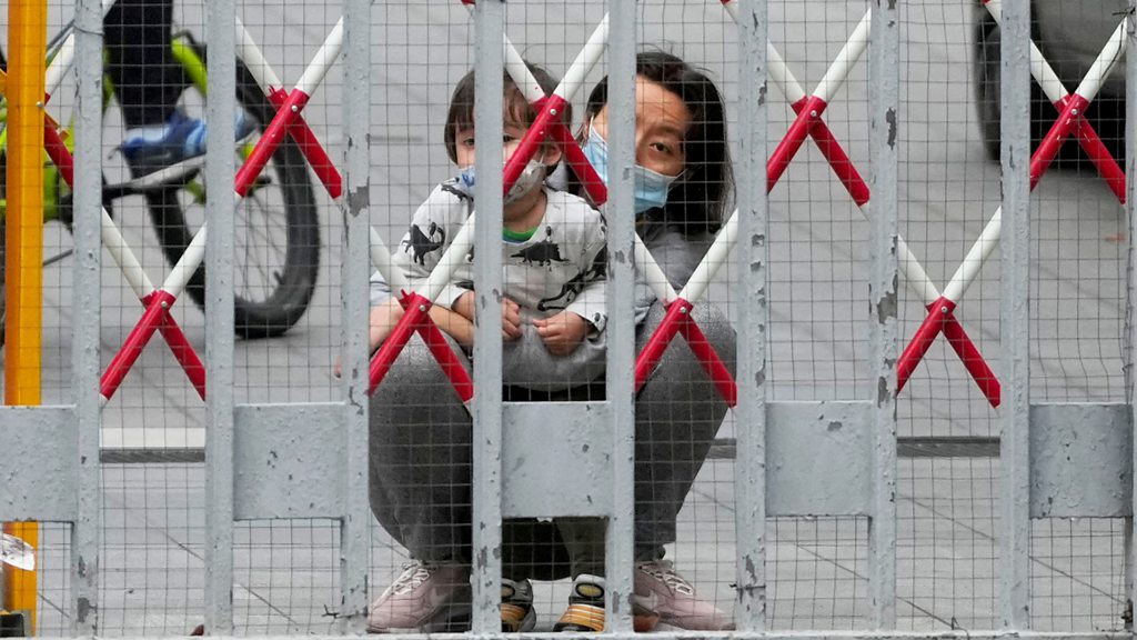 Most of the 25 million people who live in Shanghai have been in lockdown for weeks as the authorites struggle to prevent further outbreads of Covid-19. The measures, already severe, are being tightened still further, despite the World Health Organisation advising China yesterday to ditch its zero-Covid strategy. BBC China correspondent Robin Brant has been experiencing the lockdown in Shanghai first hand. He says the initial lockdown was expected to last a few days, but it is now in its seventh week. Now people there are seeing some of the most extreme measures as the authorities try to achieve 'societal zero'. He says they are now restricted to government food supplies, any health care that is not an emergency needs local CCP approval, and people living in the same apartment block as a positive case are required to go to a quarantine facility. Photo: A resident and a child look out through gaps in the barriers at a closed residential area during lockdown in Shanghai, China May 2022 Credit: Reuters
