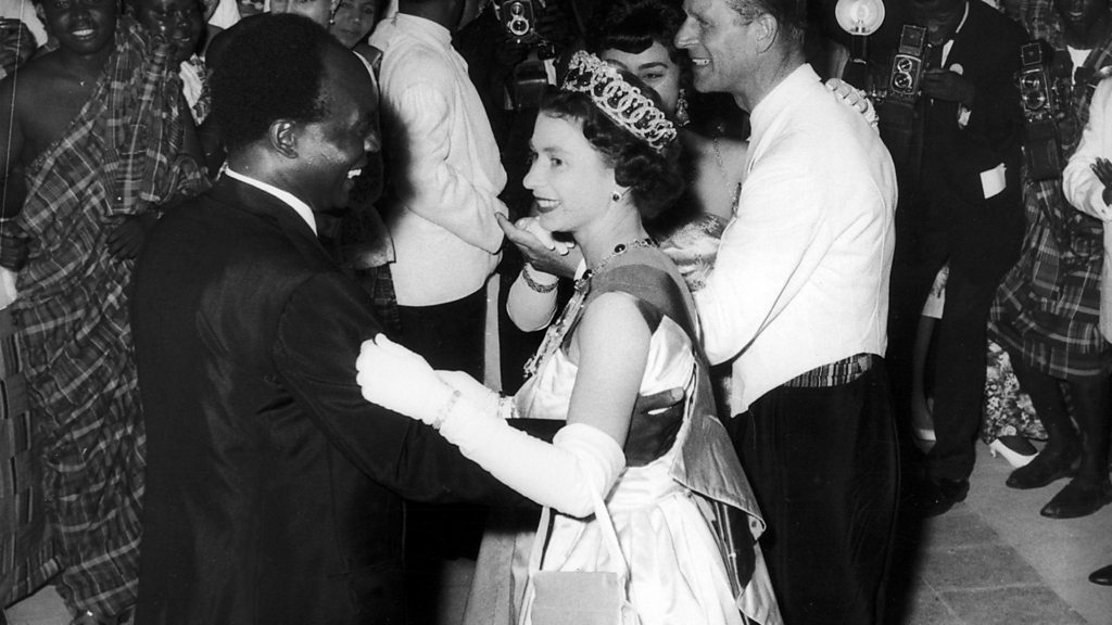 After 70 years on the throne, Queen Elizabeth II is the world’s most high profile global figure and a unique exemplar of diplomacy and soft power who, in her 70 years on the throne, has had an extraordinary influence at the centre of world affairs. She came to the throne in 1952 at a time of crisis and as the British Empire disintegrated in the aftermath of World War Two. The Queen’s role as constitutional monarch and head of the Commonwealth placed her at the heart of global crises, and she visited Ghana, Zambia and South Africa as a diplomatic envoy, helping to mediate in the racial politics of post-colonial Africa. For Britain to retain status as a world power, it had to show it accepted the changes that were sweeping away its former Empire. In 1961, The Queen was in Ghana as an envoy of the British government which was trying to negotiate this new reality. She was also going as head of the Commonwealth of post-imperial nations - but with an uncertain future. Ghana's President Nkrumah was extremely direct in referencing the ‘winds of change’ but Elizabeth recognised how she and Nkrumah build a new relationship, inside the Commonwealth, at this crucial stage of Ghana's 'nation making'. Images of them dancing together at a state banquet played an important part in this. Photo: Queen Elizabeth II of Great Britain dances with President Kwame Nkrumah of Ghana, 1961 Credit: Getty Images