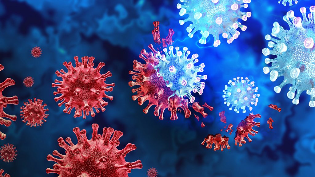 New research has found that people who have been infected with the Omicron variant show poor 'immune boosting'. Throughout the coronavirus pandemic it has been widely assumed that people gain a natural immune boost following infection. However, researchers at Imperial College London have found that Omicron provides a poor natural boost of COVID-19 immunity against re-infection with Omicron itself, even in people who are triple-vaccinated. BBC News health reporter, Smitha Mundasad has been unpicking the data. She says “when someone has got the Delta or the Alpha [variants] those have affected the immune system, imprinted on their immune system in a way as to dampen their immune respond, their defences for the next time, so that their bodies can’t recognise Omicron as well, can’t attack it as well.' Photo: Montage graphic of a mutating virus Credit: Getty Images