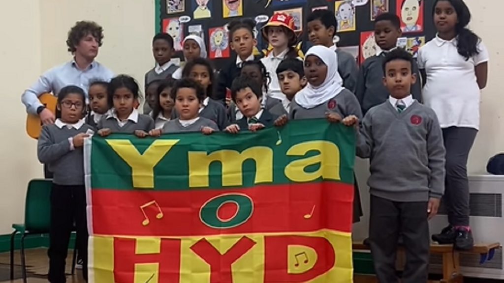Yr athro Michael Downey yn son am ddysgu "Yma o Hyd" i blant yr ysgol