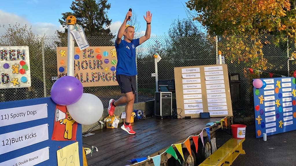 Sports teacher Mr Watson raising money for Children in Need alongside pupils.
