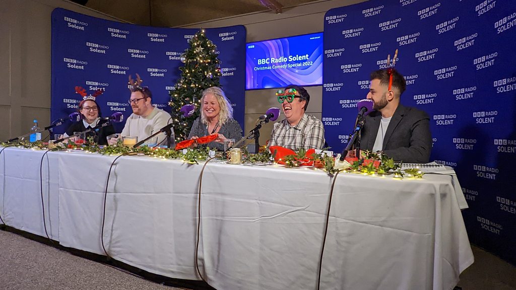 Comedians Paul McCaffrey, Paul Cox, Peebs Collier and Daniel Edison join Sam Fraser for festive fun and games.