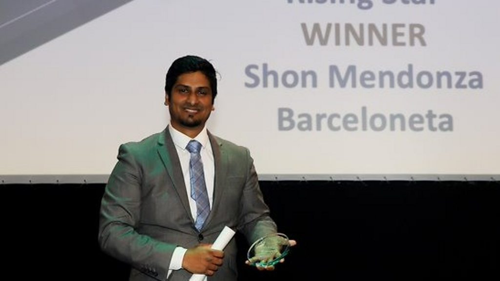 A Leicester restauranteur who saved a groom from disaster on his wedding day has been named the Rising Star at a prestigious award ceremony. Shon Mendonoza, from the Spanish restaraunt Barceloneta stepped in when disaster struck as they catered a wedding. He's been honoured with an award from at the Leicestershire Promotions Tourism and Hospitality Awards.
