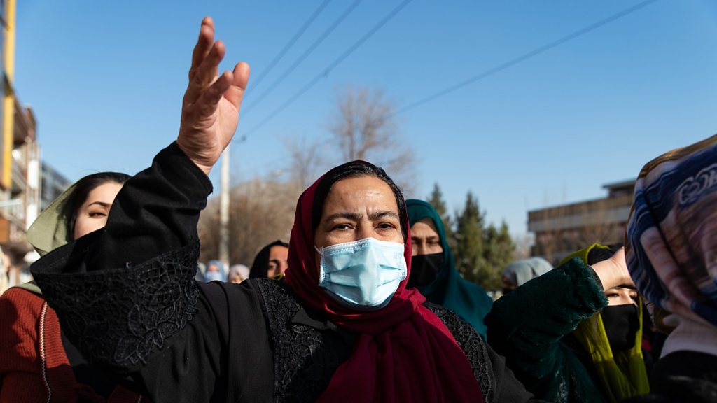 Since the Taliban retook power in Afghanistan in August 2021 women's education has been dramatically curtailed. Secondary schools closed to women in March, and in December that ban was extended to universities. Aalia Farzan is a journalist for BBC Dari who has been hearing about their experiences of protesting and imprisonment. Image: Afghan women protest against a new Taliban ban on women accessing University Education on December 22, 2022 in Kabul, Afghanistan. Credit: Stringer/Getty Images