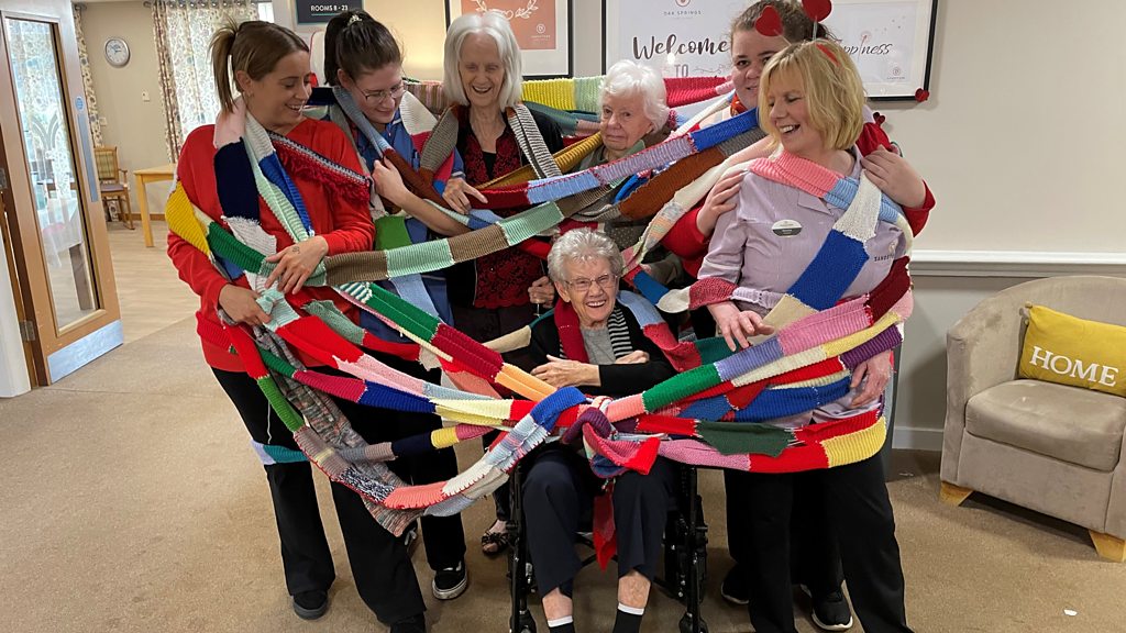 Residents at a South Liverpool care home have been busy knitting a huge scarf to promote togetherness and respect. The scarf is as long as the Liver Building is in height!