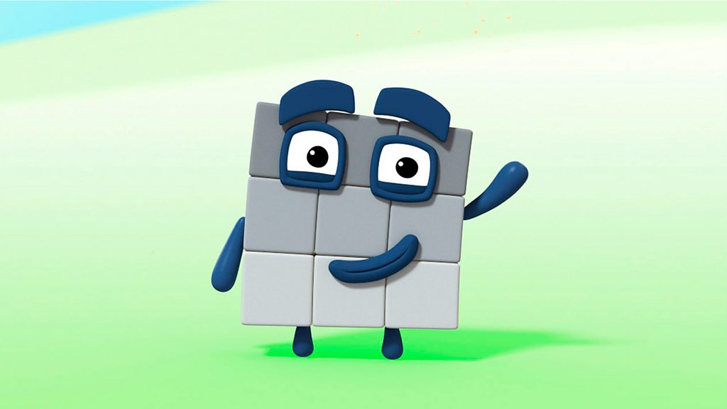 Numberblock Nine arrives in Numberland, finds a friend in Four, sings a song about squares - and sneezes.