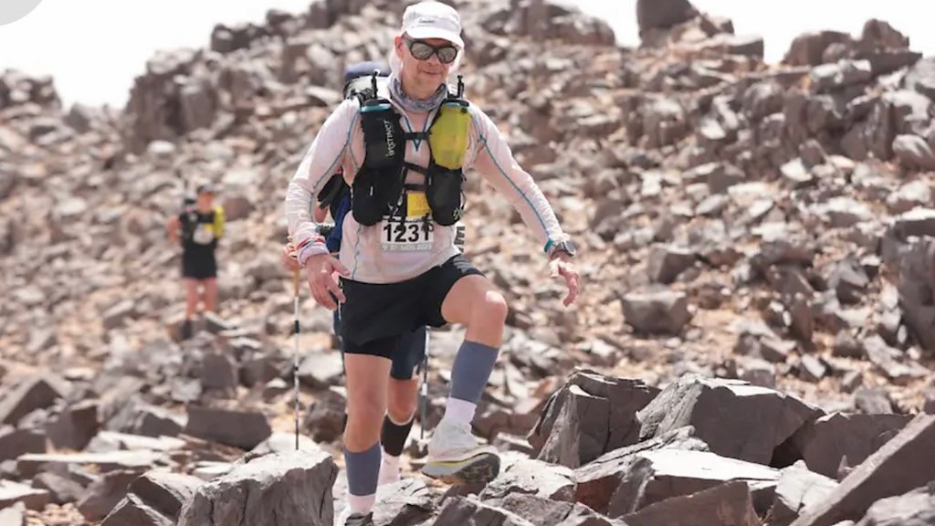 The Marathon des Sables involves running across the Sahara Desert in heat of up to 50°. Nathan Walton from Woore competed the 156 miles to raise money for the Douglas Macmillan Hospice who cared for his mum who passed away last year. He spoke to BBC Radio Shropshire's Adam Green.