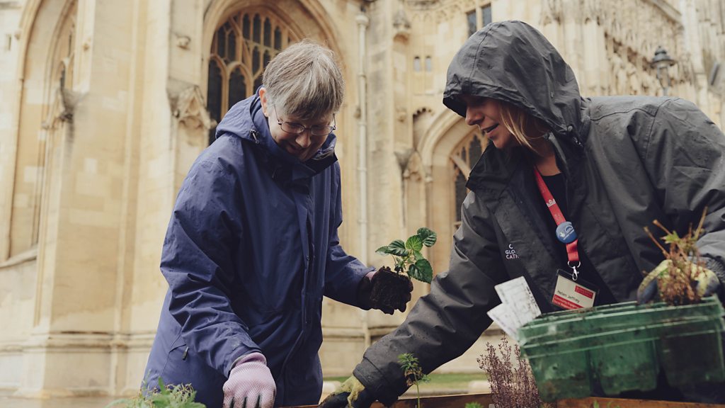 If you've been outside Gloucester Cathedral recently... you might have noticed new flowers and planters taking shape.That's because volunteers meet to look after them every Wednesday... But it's about more than just gardening as many of the volunteers are homeless or vulnerable... or wanting to learn new skills. Jon Smith has been along to find out more: